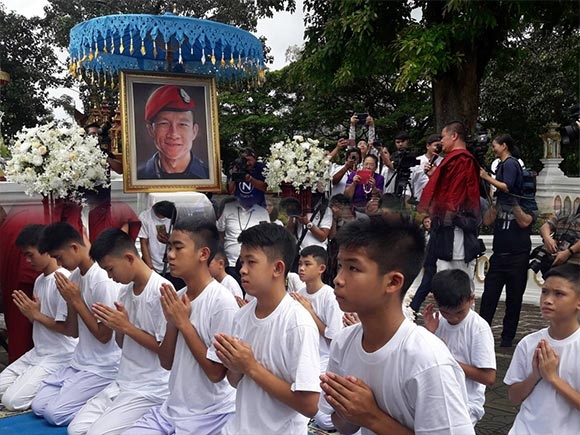 หมูป่า เข้าพิธีบวงสรวงสิ่งศักดิ์สิทธิ์พระธาตุดอยเวา เตรียมปลงผมบวชให้ จ่าแซม