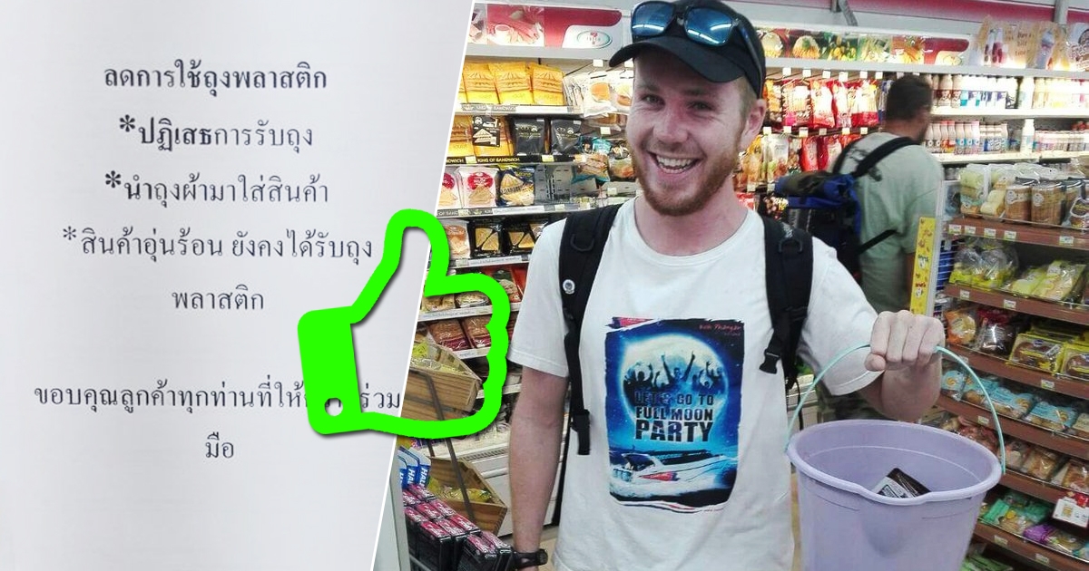 ชื่นชม.. ร้านสะดวกซื้อเกาะเต่า เลิกใช้ถุงพลาสติก ฝรั่งปรับตัวไวพกถังมาใส่แทน