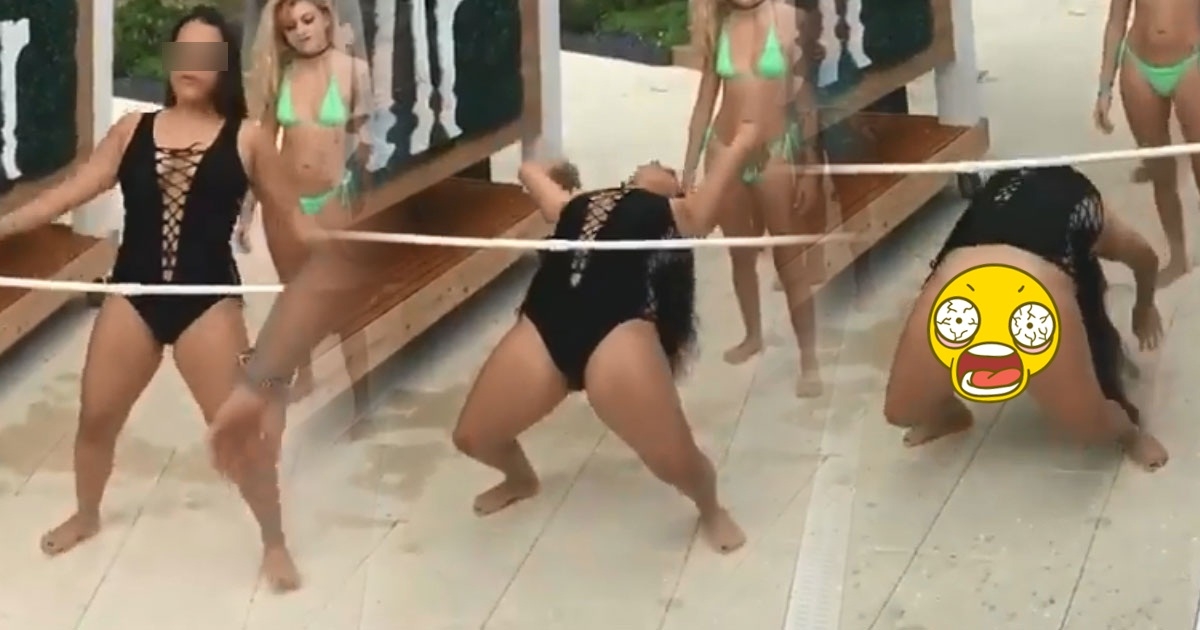 สาวแอ่นตัวลอดเชือก ท่ายากไม่แคร์ชุดฟิต จนขาดแควก โชว์น้องสาวหรา