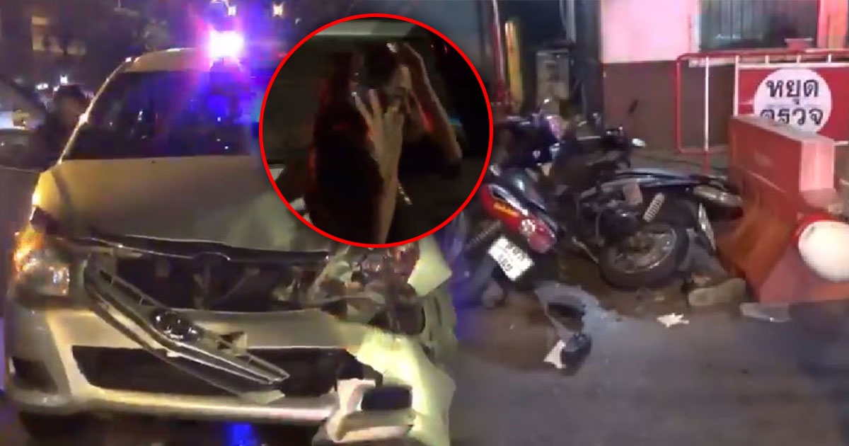 ระทึก สาวใหญ่เมาแล้วขับ ซิ่งแหกด่านกลางดึก ชนดะกวาดเรียบทั้งตำรวจ - ชาวบ้าน
