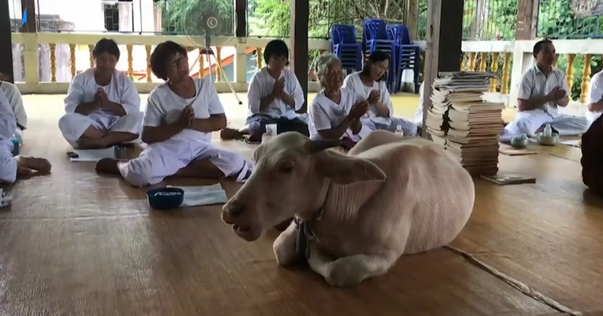 ควายเผือกกตัญญู เดินตามพระบิณฑบาตทุกเช้า หลังถูกไถ่ชีวิตจากความตาย