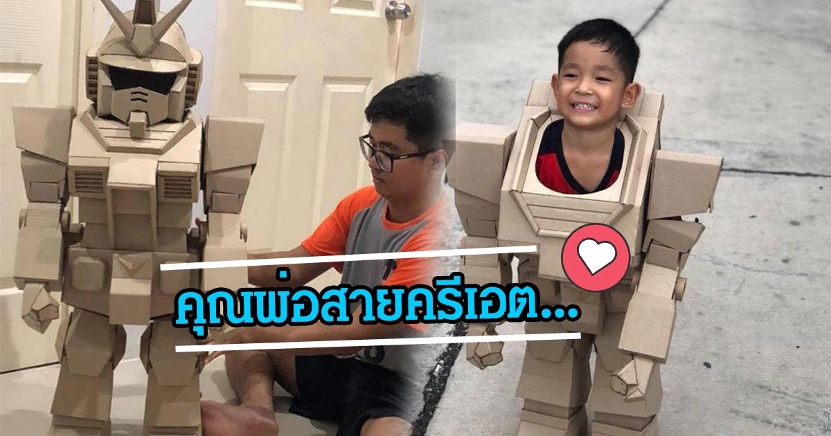 คุณพ่อสายครีเอต...จับกล่องกระดาษไร้ค่า แปลงร่างเป็นหุ่นยนต์กันดั้มให้ลูกชาย