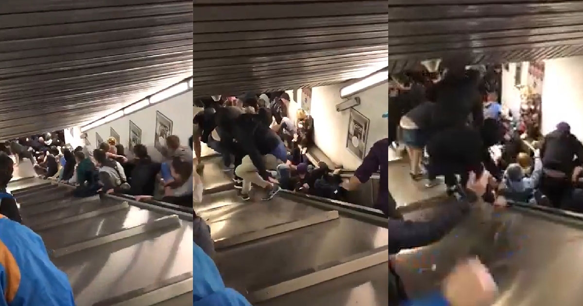 เปิดคลิป บันไดเลื่อนชำรุดในโรม เลื่อนลงเร็วจัดจนคนล้ม-ทับกัน แฟนบอลเจ็บเพียบ