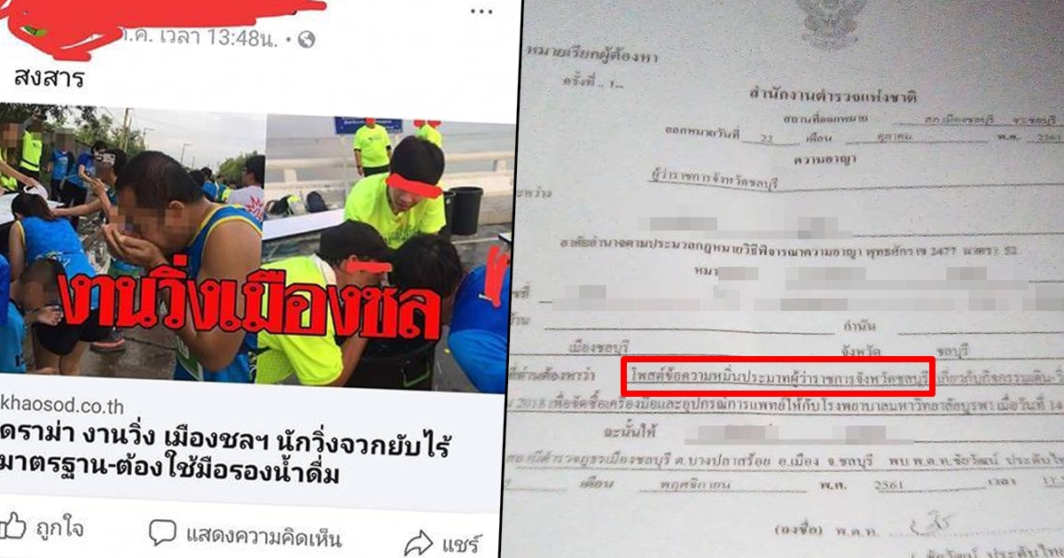 สาวสุดเซ็ง แชร์ข่าววิจารณ์งานวิ่งเมืองชล เจอผู้ว่าฯ ชลบุรี ฟ้องหมิ่นประมาท !?