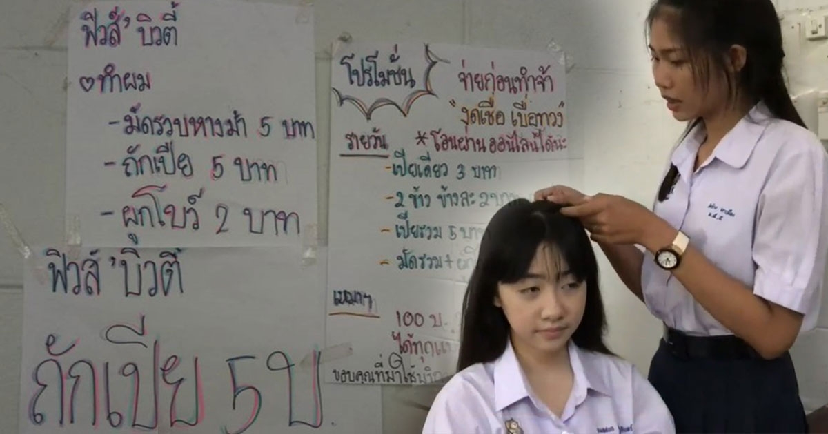 เจอตัวแล้ว ! สาว ม.5 เจ้าของซาลอนในห้องเรียน รับมัดผม-ถักเปียให้เพื่อน 2-5 บาท