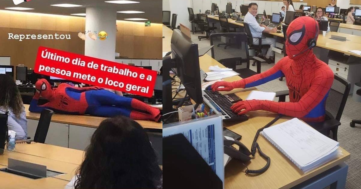 หนุ่มลาออกงาน วันสุดท้ายทั้งที เลยแปลงร่างเป็นสไปเดอร์แมน เรียกเสียงฮาสนั่นทีม
