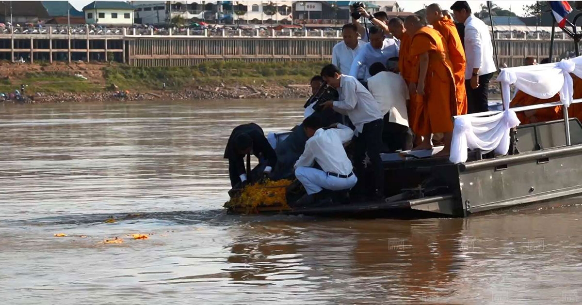 โปรยเถ้าอัฐิและอังคารหลวงพ่อคูณ ที่แม่น้ำโขงทั้งหมด หลังเก็บอัฐิในช่วงเช้า
