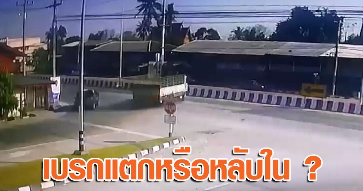 คลิประทึก ! รถบรรทุกพุ่งชนแบริเออร์ข้ามเลน ตั้ง 2 แง่ เบรกแตกหรือหลับใน