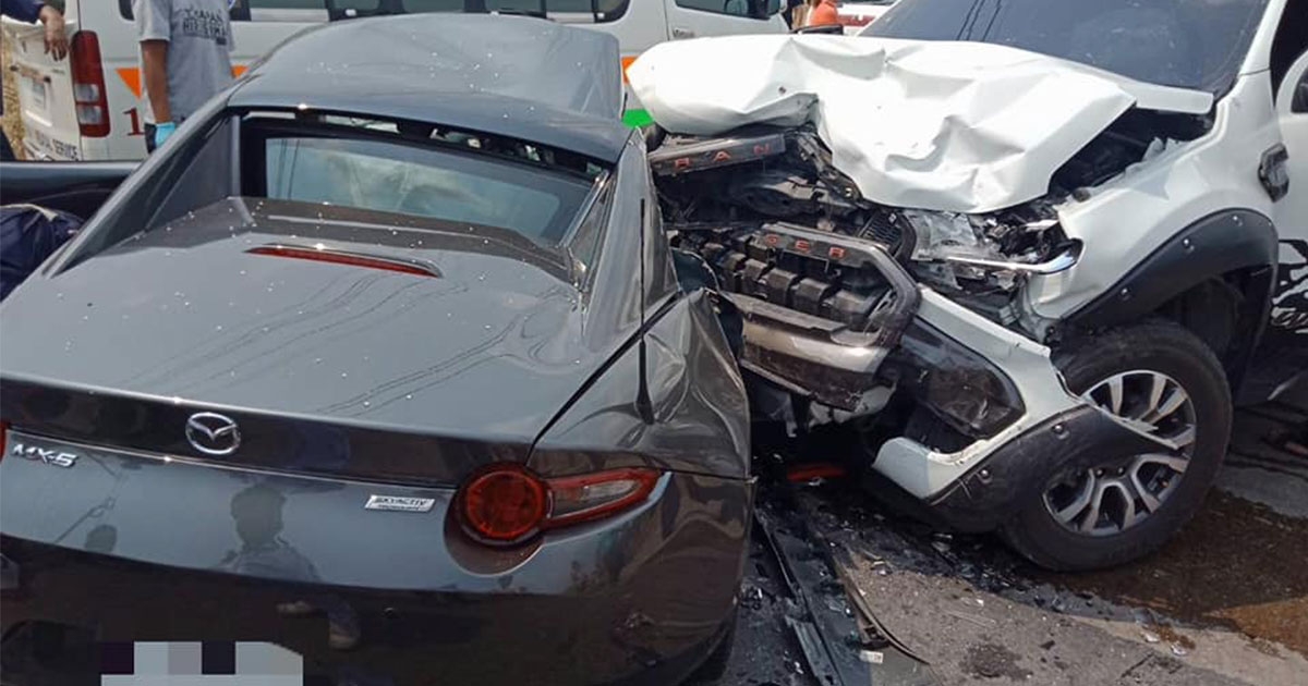 ชนสยอง หนุ่มขับรถหรูหลุดโค้ง กระบะหลบไม่ทันชนพังยับ ดับสลด 2 ศพ