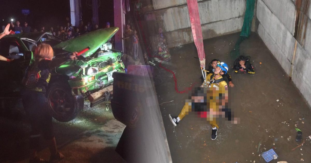 หนุ่มผู้รับเหมา ขับกระบะแต่งซิ่งแข่งกับเพื่อน ตกบ่อลึกจมน้ำดับ พยายามว่ายจนหมดแรง
