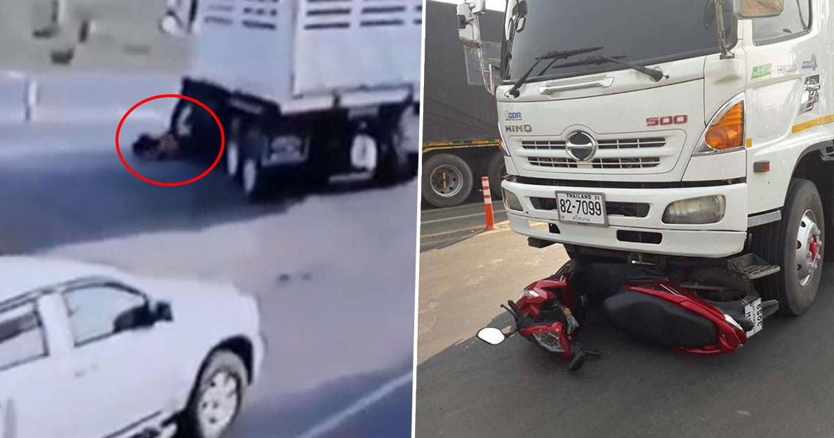อุทาหรณ์..สาวขี่มอเตอร์ไซค์แซงซ้ายแต่เลี้ยวขวา สิบล้อไม่เห็น ทับท่อนล่างเละ