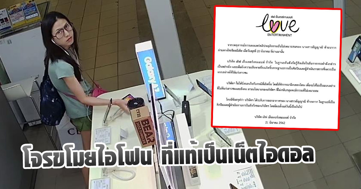 โจรหน้าตาดี สลับไอโฟนกับเครื่องปลอม โป๊ะแตกเป็นเน็ตไอดอล - ต้นสังกัดแจงแล้ว