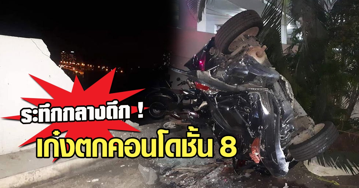 ระทึกกลางดึก ! เก๋งตกคอนโดชั้น 8 สภาพพังยับ พลเมืองดีรุดช่วยคนขับส่ง รพ.