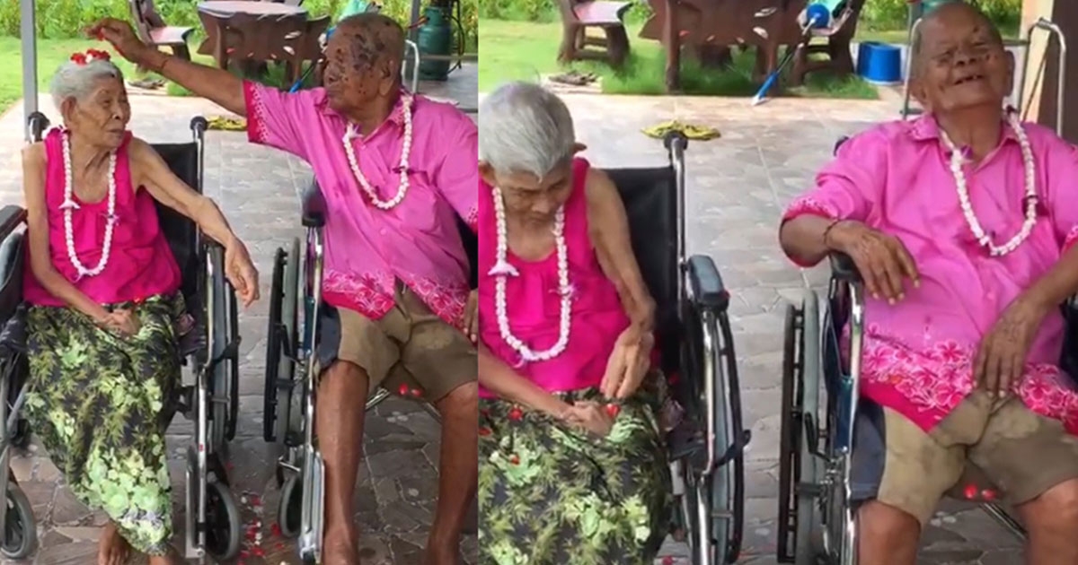 ภาพน่ารัก คุณตาโรยดอกกุหลาบหยอกล้อคุณยายหวาน ๆ 70 ปี ความรัก - ห่วงใยไม่จาง