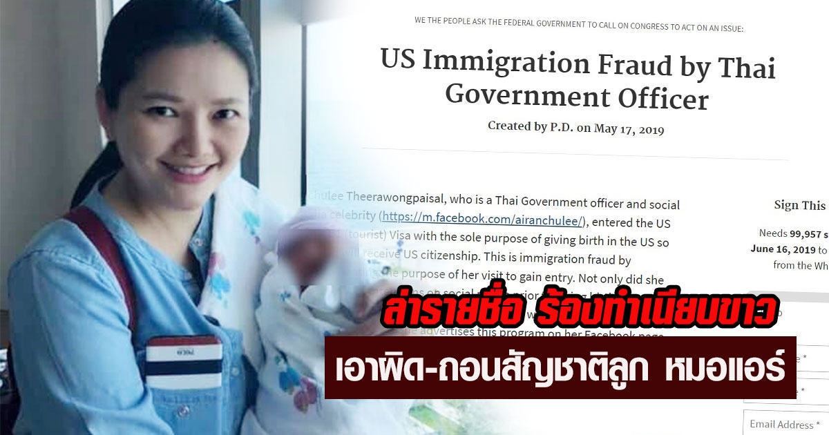 คนไทยในสหรัฐฯ ร่วมล่าชื่อ ร้องทำเนียบขาว เอาผิด-ถอนสัญชาติลูก หมอแอร์