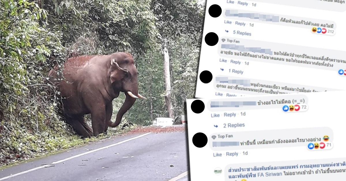 น้องช้างป่าผู้น่ารัก หลีกทางไม่ขวางรถ พุงพลุ้ยริมถนน สมบูรณ์จนโดนแซว