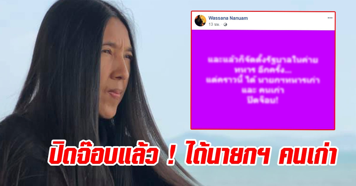 ปิดจ๊อบแล้ว ! วาสนา นาน่วม โพสต์เป็นนัย ตั้งรัฐบาลในค่ายทหาร ได้นายกฯ คนเก่า