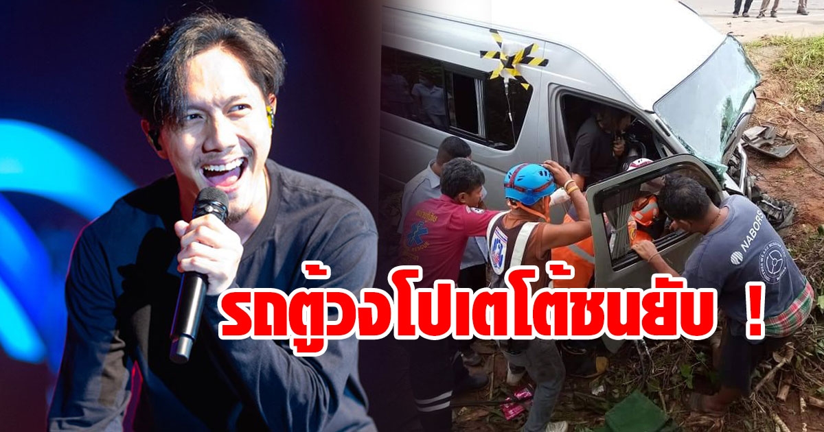 รถตู้ทีมงานวงโปเตโต้ชนยับ คนขับเจ็บ ด้านคนในวงปลอดภัย เพราะมากับเครื่องบิน
