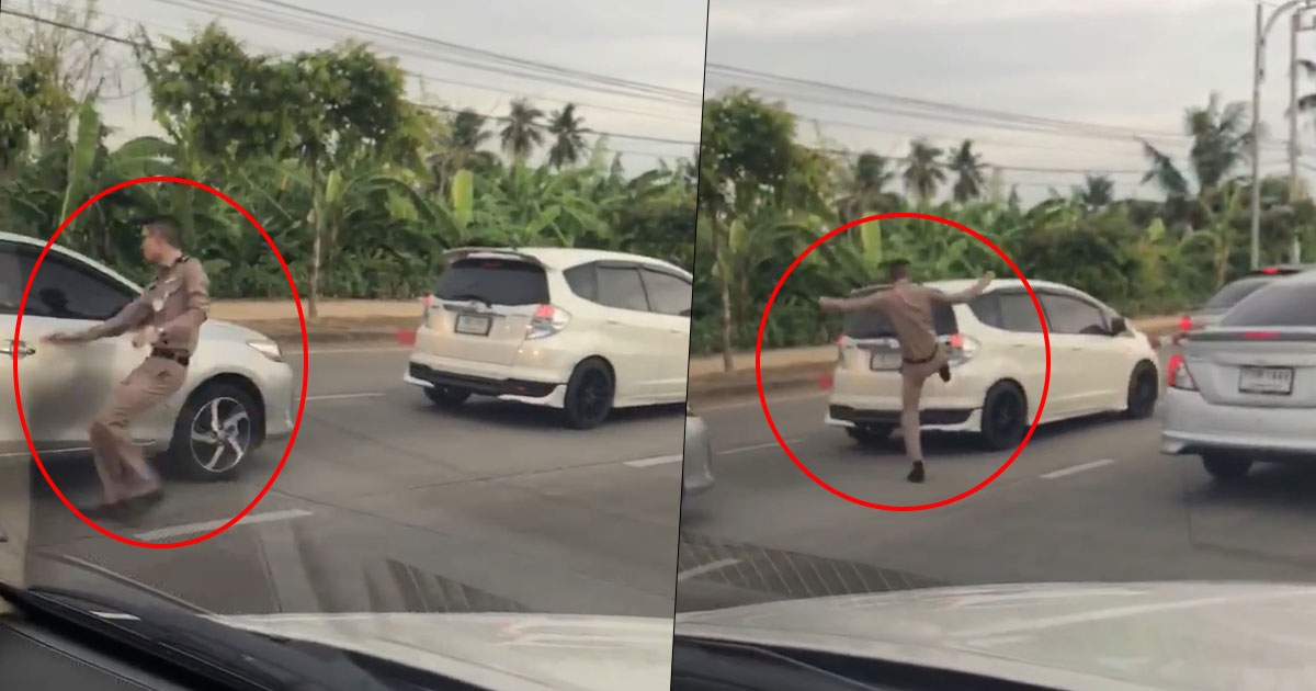 หนุ่มชุดข้าราชการ โมโหจัด โดดถีบรถชาวบ้าน เจอสวนหวิดถูกรุมสกรัมกลางสี่แยก
