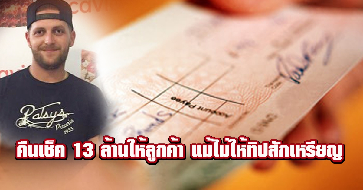 บริกรหนุ่มร้านพิซซ่า วิ่งเต้นคืนเช็ค 13 ล้านลูกค้า แม้ใจดำ ไม่ให้ทิปสักเหรียญ