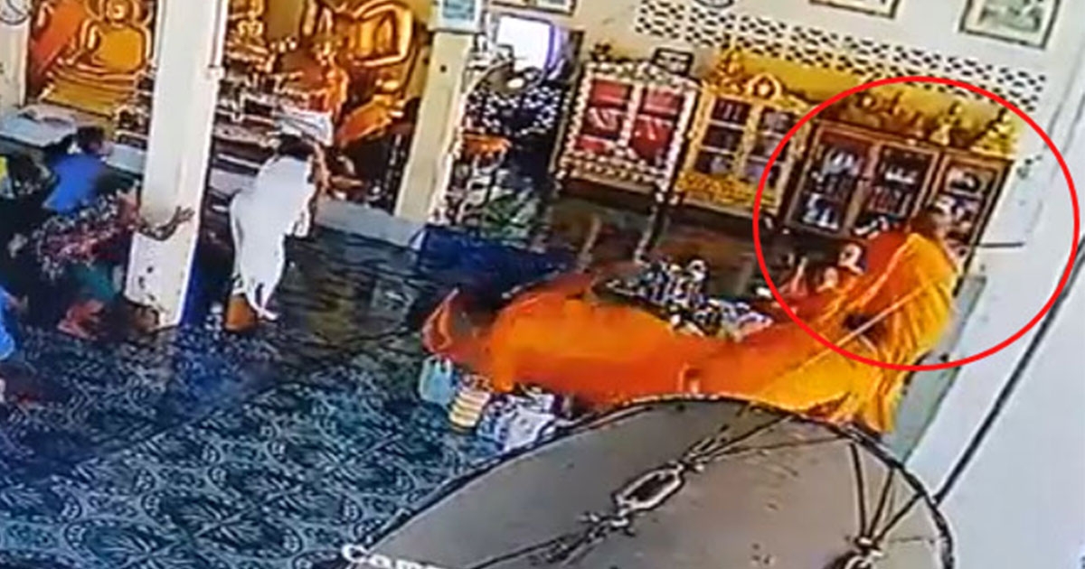 นาทีพระคลั่ง ถือมีดพร้าไล่ฟันพระรูปอื่นต่อหน้าญาติโยม กรรมติดจรวด วิ่งหนีไปโดนรถชน