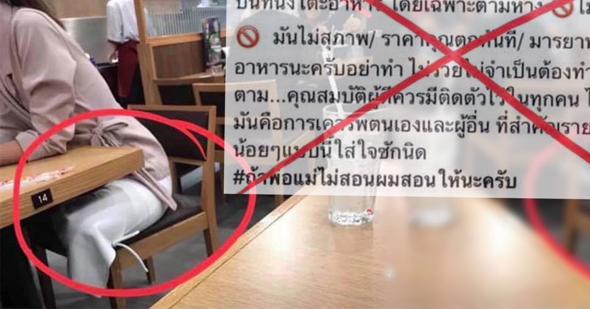 โซเชียลซัดเละ หนุ่มแอบถ่ายสาวนั่งขัดสมาธิบนเก้าอี้ บอก ทำแบบนี้ราคาตกทันที