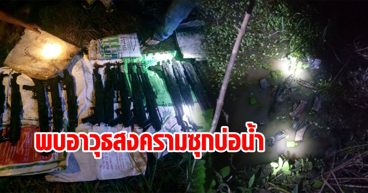 ผงะ ! พบปืนอาก้า 16 กระบอก-แมกกาซีนเพียบ สภาพพร้อมใช้งาน ซุกบ่อน้ำสุรินทร์