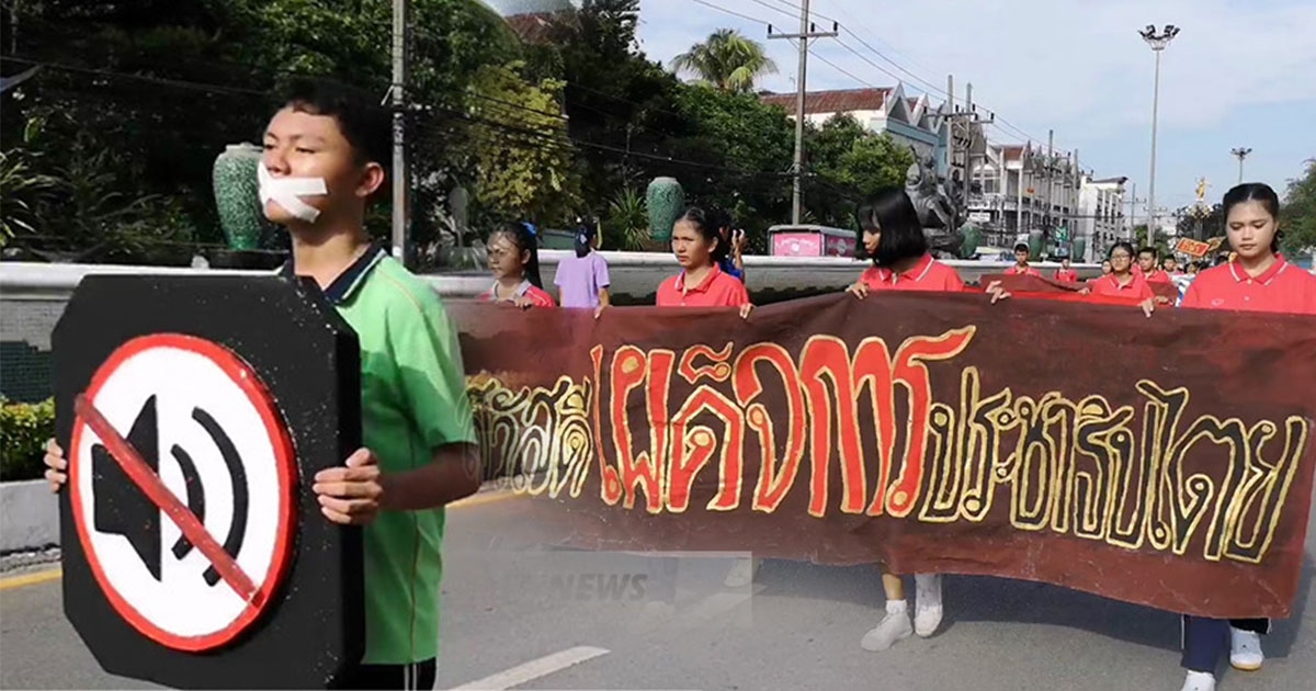 รร.สภาราชินี ตรัง ชี้พาเหรดล้อการเมือง กลั่นกรองแล้ว เข้าใจเด็กอยากแสดงความเห็น