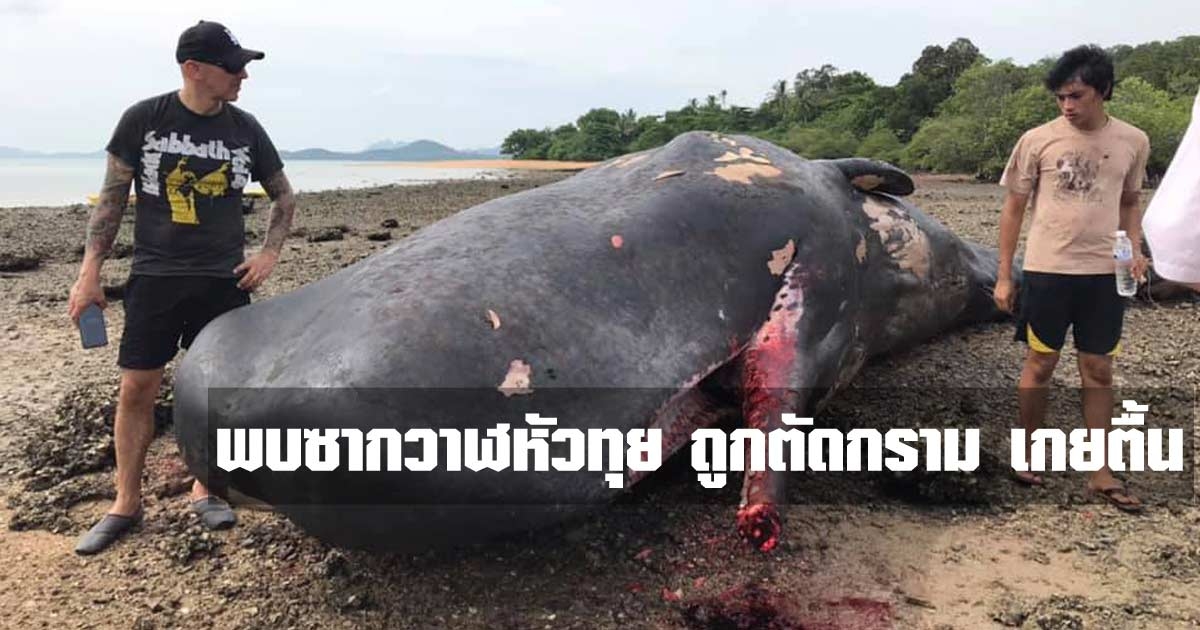 วาฬหัวทุย สัตว์คุ้มครอง เกยตื้นตาย เป็นซากน่าสลด แถมถูกมือดีตัดกรามไปทำคุณไสย