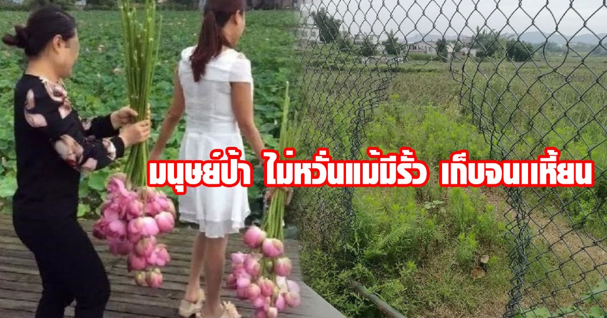 สวนเชิงนิเวศจีนน้ำตาตก นทท. บุกเก็บดอกบัวจนเหี้ยน ขนาดมีรั้วกั้นยังแหกได้