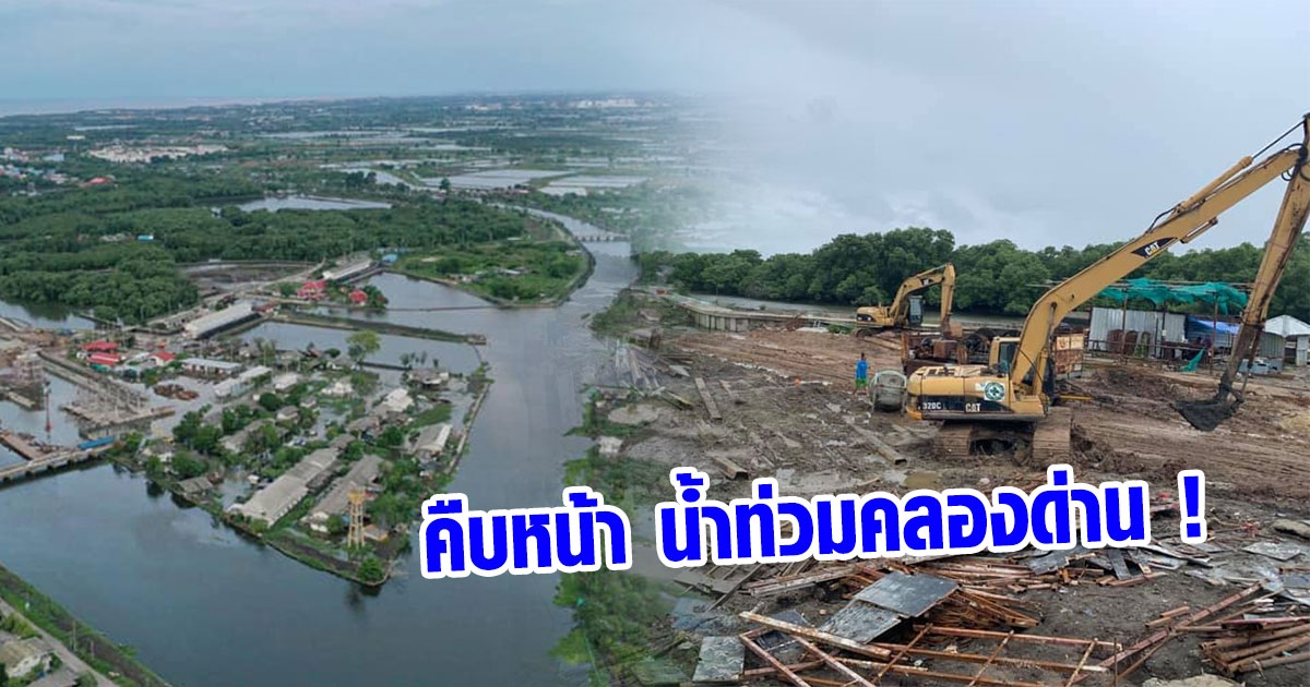คืบหน้า น้ำท่วมคลองด่าน ทำนบแตกกลางดึก ตอนนี้น้ำแห้ง - เร่งทำคันกั้นน้ำเพิ่ม