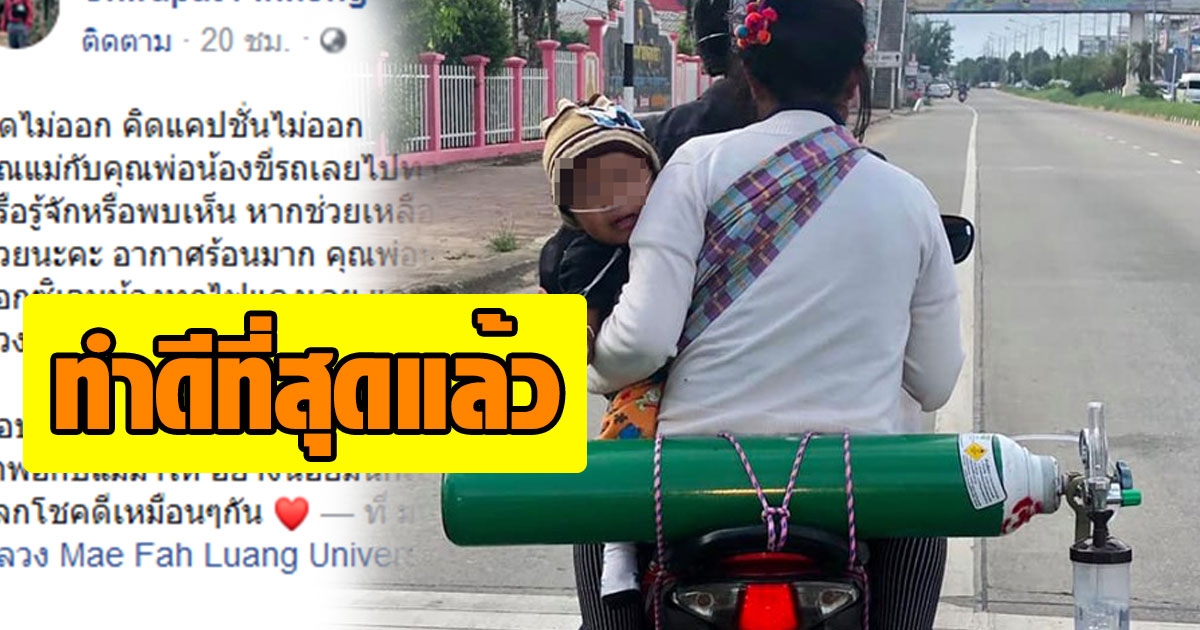 ซึ้งทั้งโซเชียล พ่อแม่พาลูกซ้อน จยย. เอาถังออกซิเจนไว้ข้างท้าย ทำดีที่สุดแล้ว