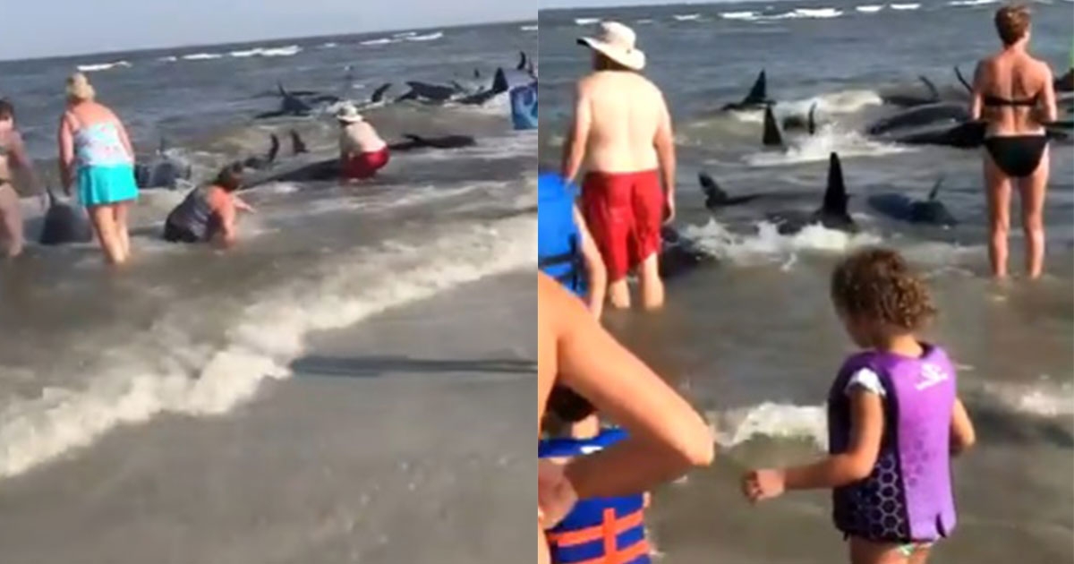 นักท่องเที่ยวแตกตื่น วาฬกว่า 20 ตัว โผล่โต้คลื่นชายหาด เร่งช่วยกันส่งกลับทะเล
