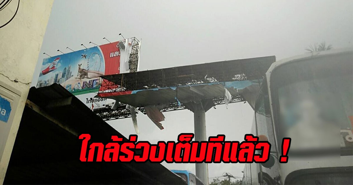 ฝนถล่มหนัก ทำป้ายโฆษณาถนนวิภาวดี หักผ่าครึ่ง สุดหวาดเสียว ใกล้ร่วงเต็มทีแล้ว