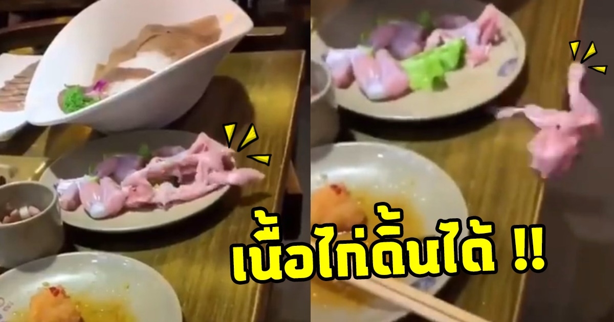 ลูกค้าสะพรึง กรี๊ดลั่นร้านอาหาร เนื้อไก่สด ๆ ดิ้นกระโดดออกจากจาน (คลิป)