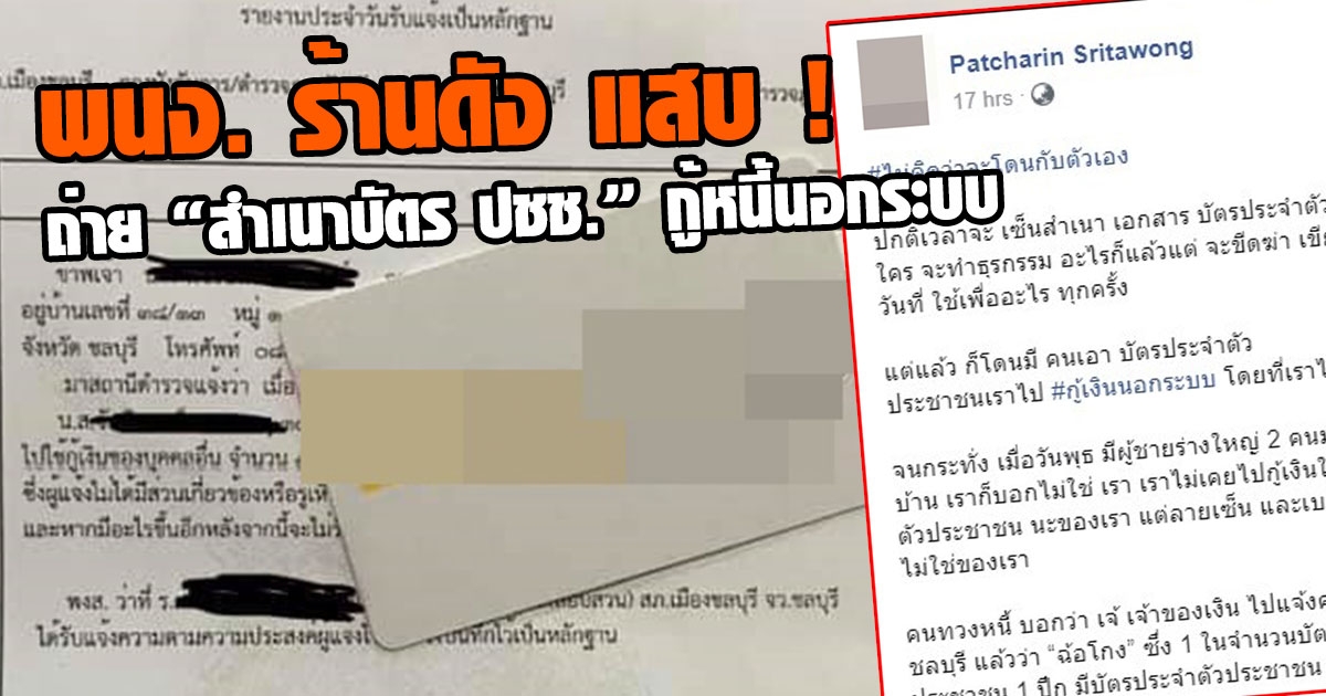 สาวโดนเอาบัตรประชาชน ไปกู้หนี้นอกระบบ ผลจากการให้พนักงานไป ถ่ายเอกสาร