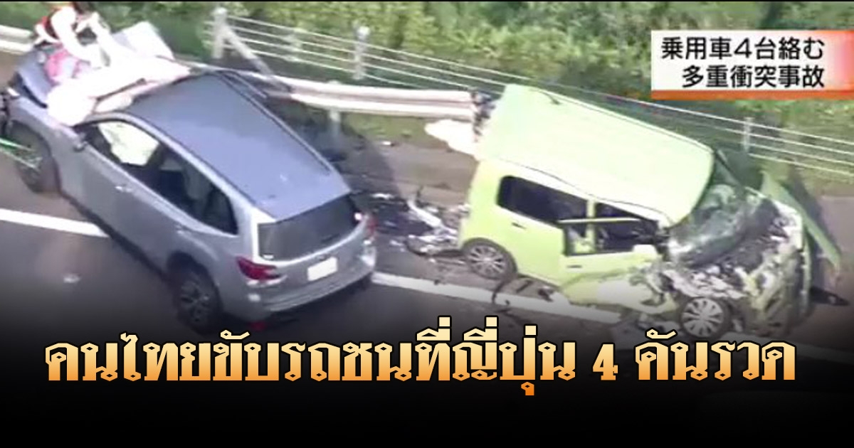 หนุ่มไทยขับรถข้ามเลนในญี่ปุ่น ชนยับ 4 คันรวด โทษอาจติดคุกหนัก 7 ปี