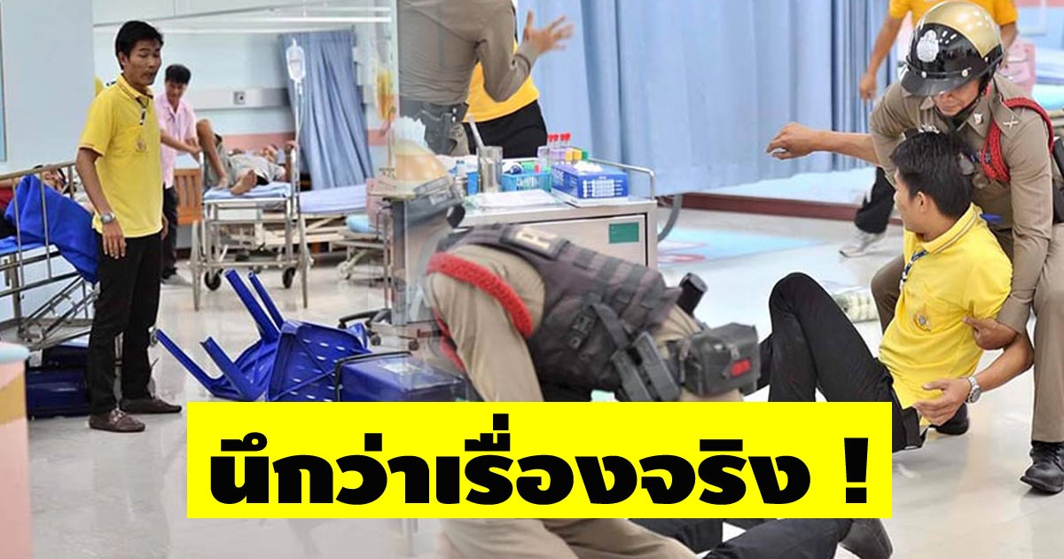 รพ. เล่นใหญ่ ซ้อมคุมเหตุวิวาทป่วนห้องฉุกเฉิน คนไข้-ญาติ นึกว่าเรื่องจริง หนีจ้าละหวั่น