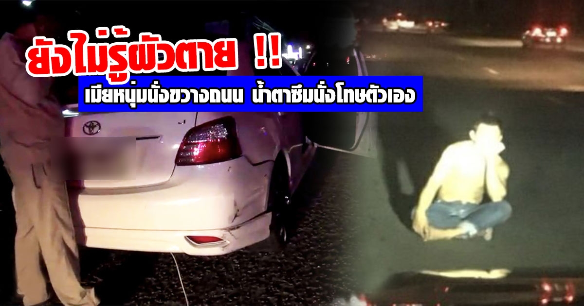 สะเทือนใจ เมียหนุ่มนั่งขวางถนนให้รถชน ยังไม่รู้ผัวตาย น้ำตาซึมนั่งโทษตัวเองผิด
