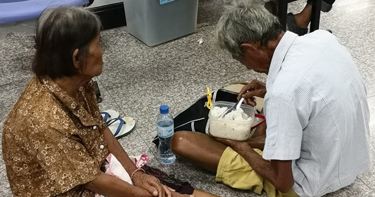 สุดรันทด 2 ตายาย นั่งกินข้าวเปล่าไม่มีเงินซื้อกับ ประทังความหิว รอคิวหมอตรวจ