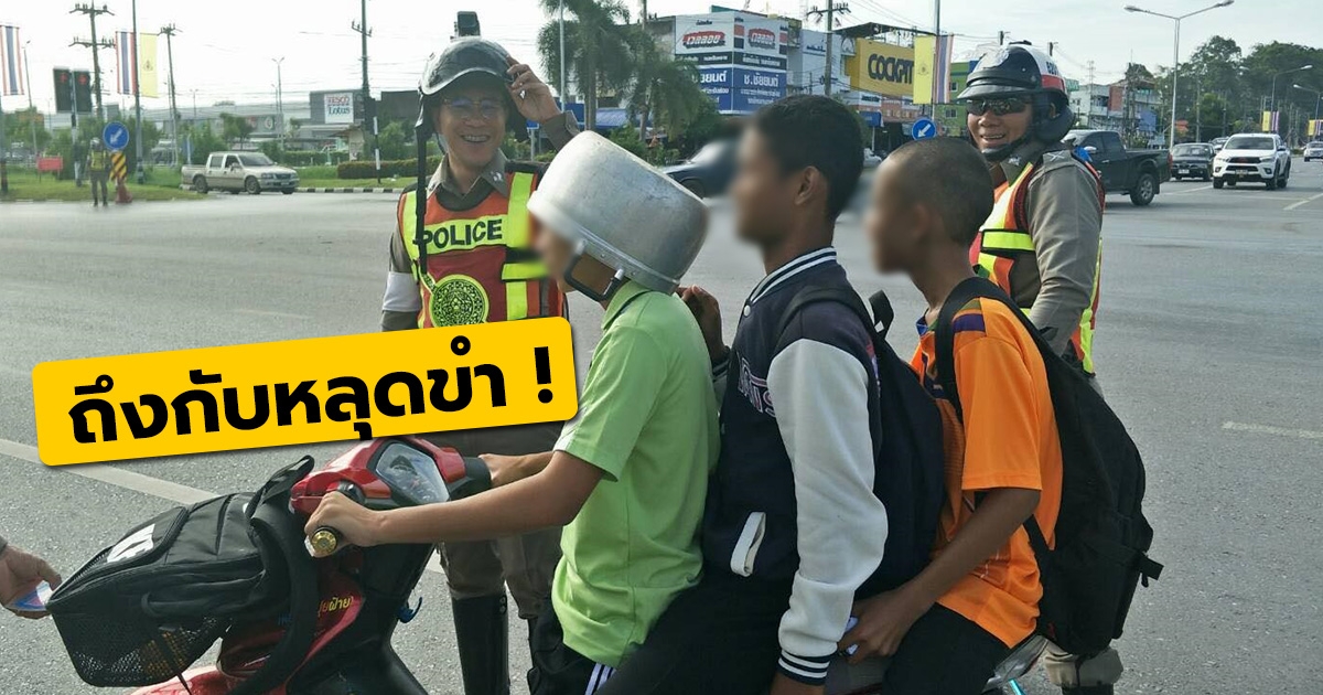 คุณตำรวจถึงกับหลุดขำ 3 เด็กนักเรียน ตกใจเจอด่าน คว้าหม้อครอบหัวหมับเข้าให้