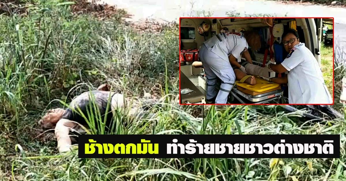 ช้างพัทยาตกมัน กระทืบฝรั่งขี่จักรยาน แทงขาเละ เลือดอาบ อาการสาหัส