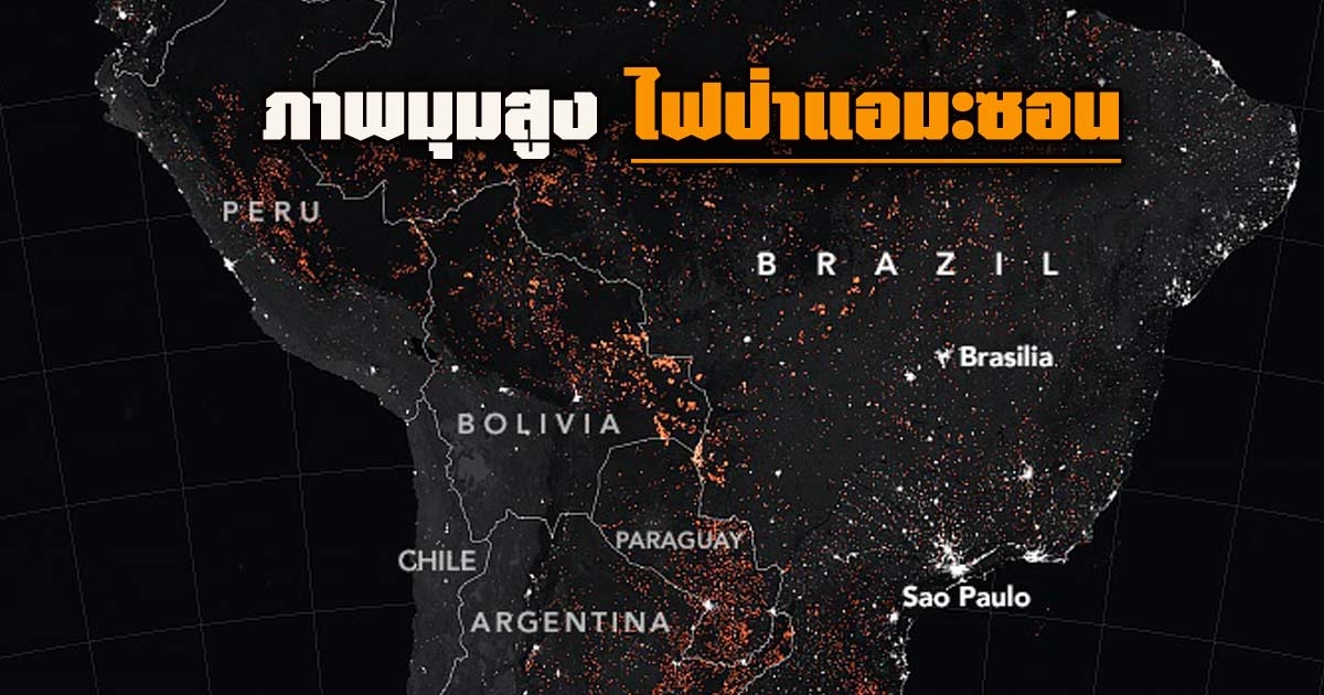 NASA เผยภาพมุมสูงจากดาวเทียม ไฟป่าแอมะซอน ลุกลามขยายวงกว้าง