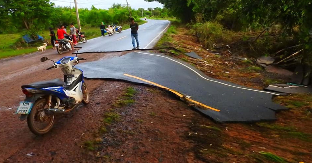 ชาวบ้านโอด เจอถนนลอกเป็นแผ่น ๆ หลังน้ำลด คาดก่อสร้างไม่ได้มาตรฐาน
