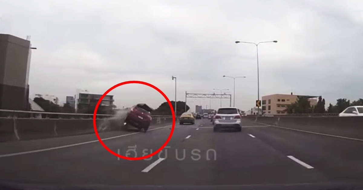 จุดจบสายมุด ..เก๋งเจอของแข็งขับประกบ หวังแซงแต่เสียหลัก สุดท้ายชนเอง พังเอง