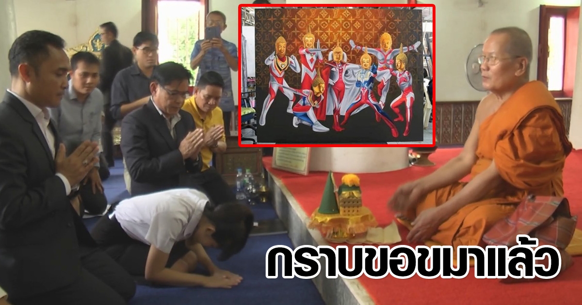 นักศึกษากราบขอขมาเจ้าคณะทั้งน้ำตา ปมวาดภาพพระพุทธรูปอุลตร้าแมน