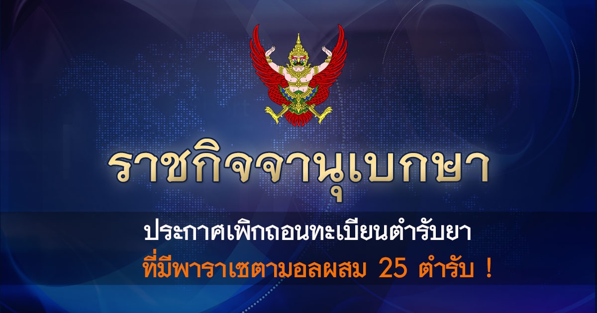 ราชกิจจาฯ ประกาศเพิกถอนทะเบียนตํารับยา ที่มีพาราเซตามอลผสม 25 ตำรับ