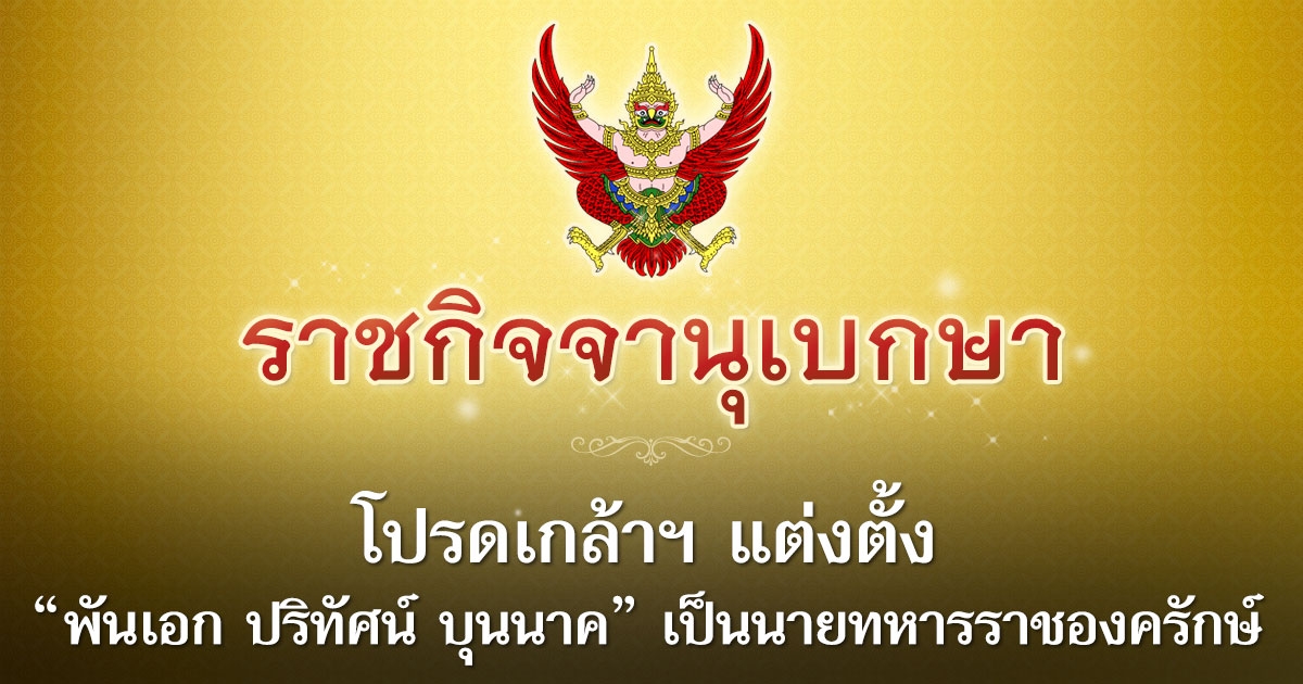 พระบรมราชโองการ โปรดเกล้าฯ แต่งตั้ง พ.อ. ปริทัศน์ บุนนาค เป็นนายทหารราชองครักษ์