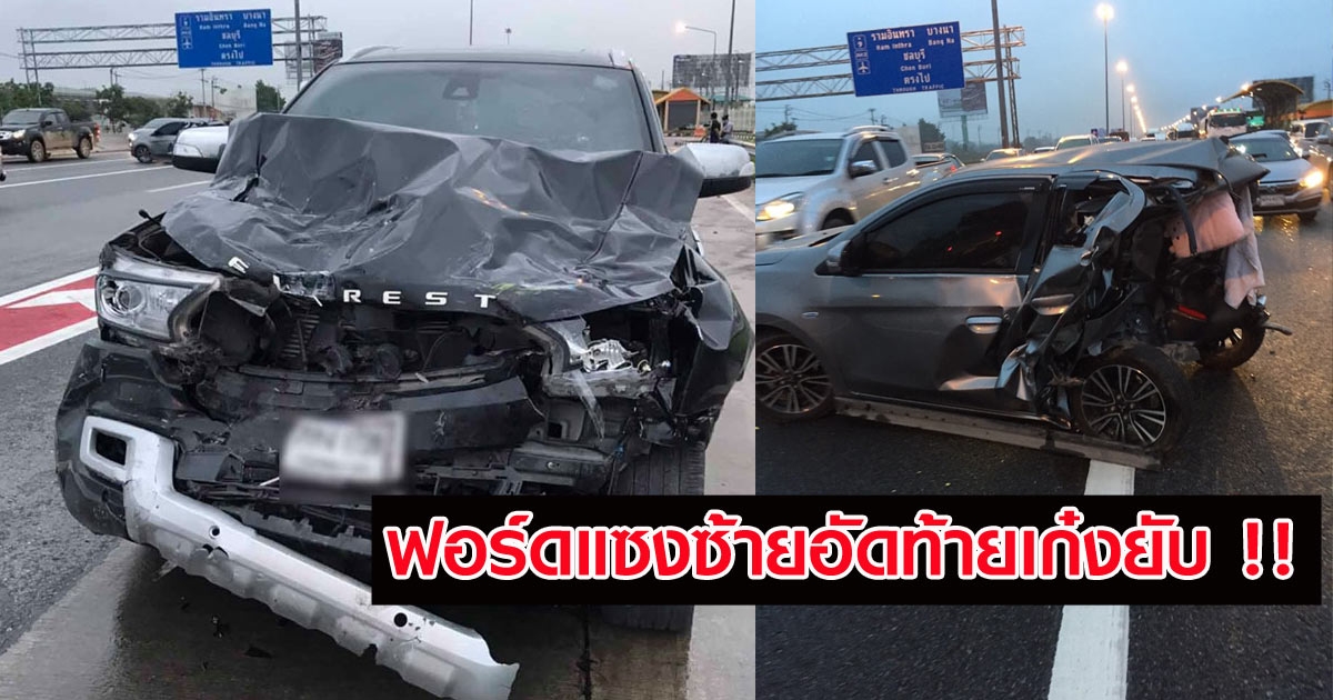 รถฟอร์ดแซงซ้ายชนแรง เก๋งยุบครึ่งคัน ร่างกระเด็นตกข้างทาง ดับ 2 ราย