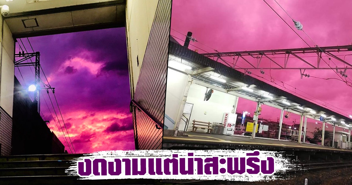 ท้องฟ้าญี่ปุ่น เปลี่ยนเป็นชมพูม่วงงดงาม ก่อนมหันตภัยใหญ่ พายุฮากิบิสจะมาเยือน